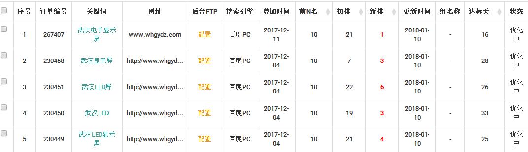 武漢世紀光源電子有限公司于2017年11月29號與我司簽約網(wǎng)站優(yōu)化項目,主推:武漢LED、武漢LED屏、武漢LED顯示屏、武漢顯示屏、武漢電子顯示屏。我司于12月正式啟動優(yōu)化項目,所有關(guān)鍵詞在12月19號全部上搜索引擎首頁。