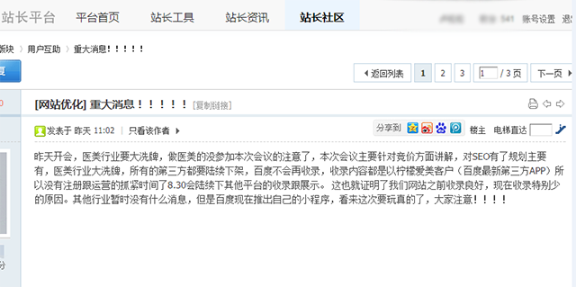 最近逛博客看到一條消息: “醫(yī)美行業(yè)面臨洗牌!百度不再收錄”,因為小編比較關(guān)注這一塊的動態(tài),于是點進去看了一遍,雖然我一直希望百度在醫(yī)美行業(yè)這一塊能更加的嚴格,避免造成不好的后果。但是就目前來看,這些消息給出的依據(jù)根本沒有說服力。