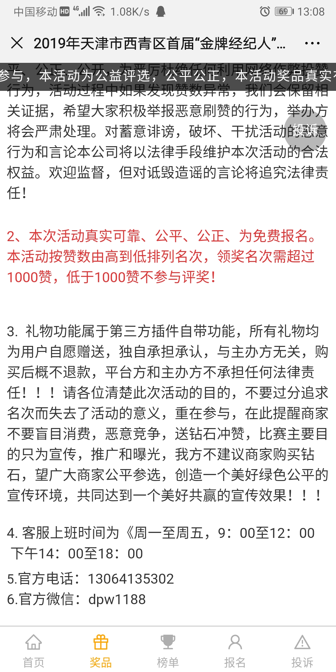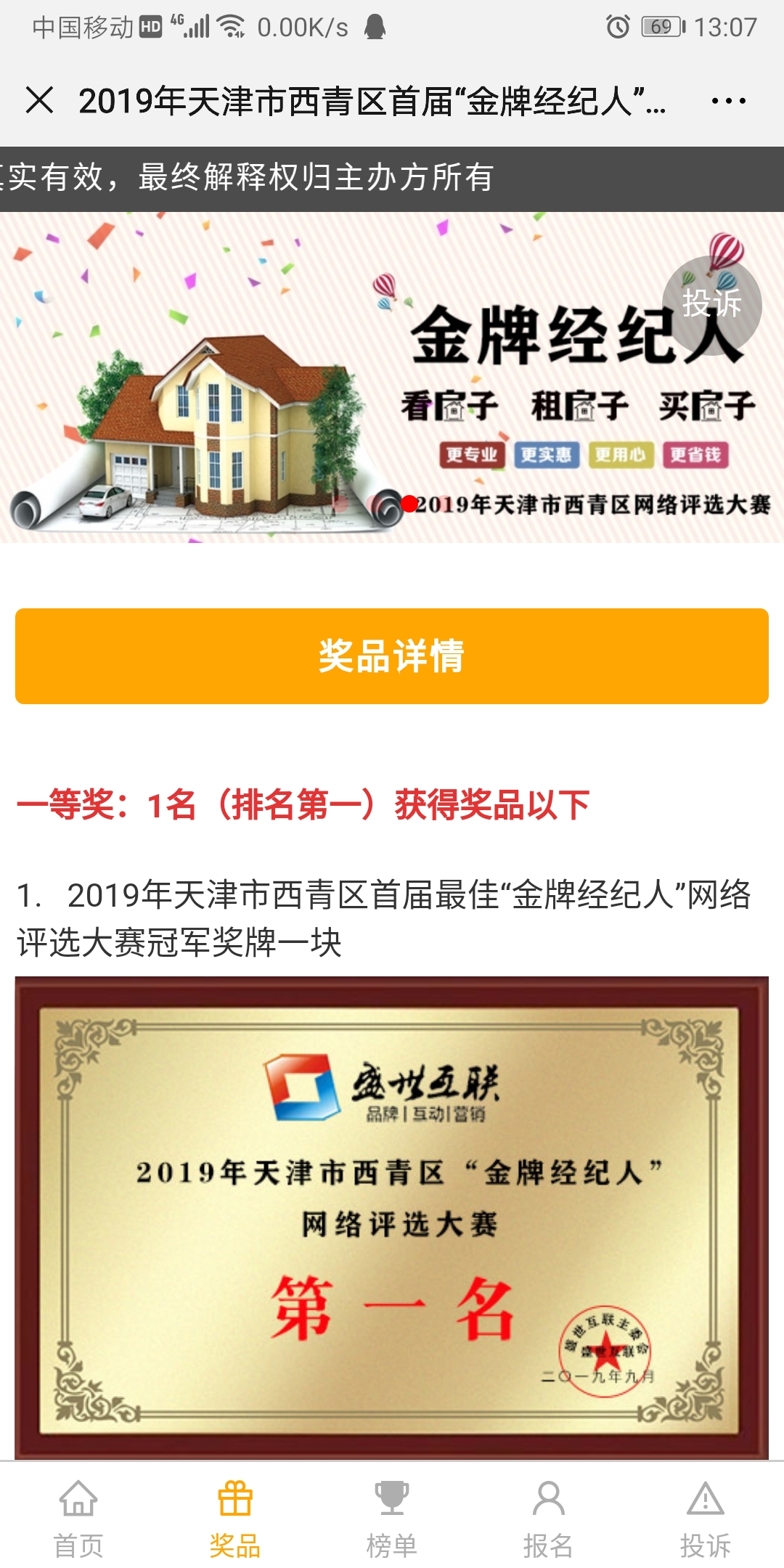 總經(jīng)理表示沒(méi)有發(fā)起這樣的活動(dòng),于是小編就回復(fù)給了這位朋友,從這位朋友這里得知,有一個(gè)天津房地產(chǎn)經(jīng)紀(jì)人評(píng)選投票活動(dòng),該投票鏈接獎(jiǎng)品頁(yè)的獎(jiǎng)狀采用的是我們盛世互聯(lián)的logo。