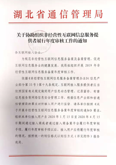 關(guān)于協(xié)助組織非經(jīng)營性互聯(lián)網(wǎng)信息服務(wù)提供者履行年度審核工作的通知